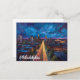 Celebrate the "City of Brotherly Love" with this vibrant, artistic postcard featuring the Philadelphia, Pennsylvania skyline. This unique painted style highlights the illuminated downtown, including the iconic City Hall Tower and the glowing light trails of the central roadways. Perfect for Pennsylvania locals, history buffs, or art lovers who appreciate this historic East Coast city. Use this postcard for travel greetings, as a piece of unique artwork, or for corporate mail.