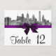 Philadelphia Pennsylvania Skyline Etched Look 01 Invitation Suite Purple Ribbon - Table Number Cards Elegante, moda y elegantes invitaciones y accesorios de personalizable con una vista grabada en blanco y negro de Filadelfia, Pennsylvania. También tiene un aspecto de satén púrpura. Este producto forma parte de un conjunto de diseños de correspondencia que son de fácil personalizable para muchas ocasiones y eventos. Si necesita tarjetas RSVP separadas que coincidan, notas de agradecimiento, sellos, imanes, etiquetas de vinos, menús, tarjetas de acompañantes, programas de eventos, etiquetas de favores u otros accesorios, por favor, revise nuestros otros listados. Si no ves un producto que te interese, o te gustaría ver este diseño en diferentes colores o con diferentes fotos de NYCisMyMuse que ves en nuestra tienda, por favor contacta con nosotros y estaremos encantados de acomodarte. Tenga en cuenta que se trata de un diseño gráfico / foto que se transfiere al producto subyacente, y que no contiene telas, cintas, metales, grabado, gemas o emboscamientos reales. Todos los derechos reservados.