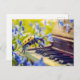 Postal Photorealistic Oil Beetle Playing Piano Among Blue
