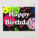 Festive birthday card for a pickleball player with colorful confetti and pickleball balloons on a blackbackground. Blue, red, bright green, yellow, hot pink, and lavender balloons made from pickleball balls. The back reads - Cheers to another year of dominating the kitchen line! Hope your birthday is a smash! Your Dinking Buddy. Personalize as you wish for your favorite pickleballer. Colorful pickleball-themed birthday postcard for your pickleball-loving mom, dad, uncle, aunt, brother, sister, neighbor, grandpa, grandma, husband, wife, friend, or work colleague who won't stop talking about pickleball.