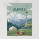 Postal Picos y torres de Almaty en fría vista retro