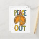 Cuidado diseño de tarta de calabaza con señal de paz y falta una tajada! El texto dice "Fuera la paz".