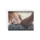 Un pie de hombre al lado del pie de un niño en arena blanca. Tomada en la playa del Parque Estatal Cape San Blas St. Joseph Peninsula. Los pies originales son de un tío y una sobrina, pero también pueden representar al padre y al hijo o cualquier combinación. Utilice el botón personalizar para añadir su propio texto o utilice esta fotografía que le hace más calurosa.