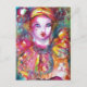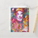 Colorido, vibrante y caprichoso cuadro acuático de colores vivos rojo, amarillo, azul, blanco y violeta inspirados en el Carnaval de Venecia y Commedia dell'Arte.