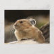 Foto de una pika americana con información sobre especies en la parte posterior.
