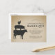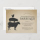 Una humorística invitación de postal con una pila de animales comestibles de granja. Perfecto para un fiesta de limpieza con barbacoa al aire libre.