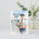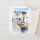 Postal Piloto sostiene flores parado en la pista