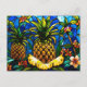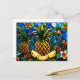 Postal Piña de vidrio manchado y flores tropicales