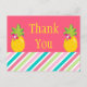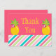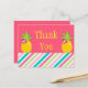 Estas piñas tropicales quieren agradecerles por asistir a su celebración. Con un tema tropical, el fondo es rosa con piñas en los lados izquierdo y derecho de la postal. Entre las piñas está "Gracias" escrito en amarillo brillante. La parte posterior continúa con el tema de fondo rosado con el tipo de letra amarillo. ¡Haga su pedido hoy mismo! Obra de arte a rayas creada por: AMBilustrations http://www.etsy.com/shop/AMBillustrations/ Pineapples: Artwork creado por: Prettygrafik design (https://www.etsy.com/shop/Prettygrafikdesign)