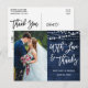 Pincel moderno guión, madera rústica azul y luces de cuerda, con amor y gracias tarjeta postal de agradecimiento de boda