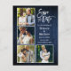 Tarjeta Postal de Anuncio de Compromiso de Pareja con Pincel Moderno 4 Fotos - Madera Azul País Rústico