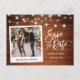 Guión De Cepillo Moderno, Estilo De Cámara Instantánea, Foto Pareja Guardar La Invitación De Compromiso De Fotos De Fecha - Madera Rústica Del País, Luces De Cadenas