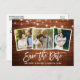 Guión de pincel moderno, Madera Rústica y Luces de cuerdas, Guardar la pareja de compromiso de fecha 3 Postal de foto