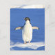 Un pingüino gracioso que esparce sus alas en una pantalla para la cámara.