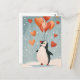 Postal Pingüino adorable con globos cardíacos