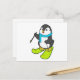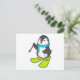 Postal Pingüino como esquiador con esquís