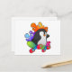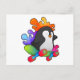 Postal Pingüino como patinador con monopatín