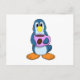Postal Pingüino con taza de café