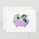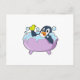 Postal Pingüino en bañera con pato