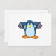 Postal Pingüino en culturismo con mancuernas