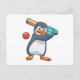 Postal Pingüino en el críquet con bate de críquet