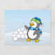 Postal Pingüino pequeño con bolas de nieve ondeando
