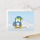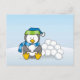 Un pequeño personalizado de pingüino sentado y sosteniendo una bola de nieve.