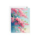 This stunning design features multiple graceful branches heavy with vibrant pink cherry blossoms stretching across a beautiful, clear sky. Rendered in a delicate and airy watercolor style, each blossom is painted in shades of rose and magenta pink with soft white centers, capturing the peak of spring's beauty. The branches are accented with small, fresh green leaves that provide a natural contrast to the dense pink floral clusters. The background transitions from a deep, tranquil blue to a bright, optimistic white, suggesting a perfect sunny afternoon. A whimsical flurry of pink petals drifts through the air, adding a sense of movement and romance to the entire botanical scene. The overall aesthetic is elegant, peaceful, and full of natural grace, making it an exceptional choice for anyone who admires Japanese floral art and spring nature. This elegant cherry blossom postcard is a perfect choice for sending a sophisticated "thinking of you" note or a meaningful greeting to a friend who loves the beauty of the floral kingdom. You might choose to use this artistic card for a spring-themed garden party invitation or to celebrate a professional milestone with a touch of natural elegance for your colleagues. It also makes a beautiful decorative piece for an office desk or a stylish addition to a gallery wall as a small token of spring's arrival. This versatile design is also an excellent choice for a housewarming message, a wedding thank you note, or as a heartwarming way to share a message of joy for any situation or event.
