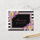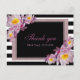 Faux purpurinoso rayas rosadas Florales en blanco y negro Gracias Postcard