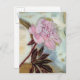 © Lisa Snow Lady / Wild Apple. Una imagen de una flor de peones rosados y un brote de flores. Hojas verdes, tallos y un fondo amarillo azulado completan la imagen.