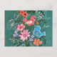 Este diseño es un viejo bordado de criwel que pinté fresco sobre el hilo y el tejido con acrílico, y luego añadí flores con un lápiz de pintura. ¡Hace una postal brillante y rica para enviar o enmarcar!