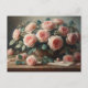 Rosas rosadas rubias rubias románticas con hojas verdes. Esta hermosa obra de pintura botánica de aceite sería una excelente adición a una colección de postales, utilizada para la reserva de recortes, u otros proyectos de artesanía.