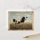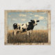 Una encantadora representación de una vaca blanca y negra en medio de un prado iluminado por el sol, pintada en un estilo rústico vintage. El marco de madera texturizada complementa la idílica escena pastoral.