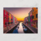Postal Pintoresca isla de Burano al atardecer Venecia Ita
