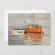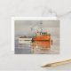Postal de Acuarela Barco Pesquero de Maine Paisaje Marino Naranja Gris