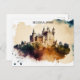 Hermosa pintura de Segovia España sobre una postal que muestra el famoso castillo con su arquitectura única. Es un gran regalo para todos los turistas del famoso destino europeo de viajes.