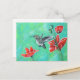 Postal Pintura de colibrí y cachorros