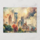 Postal Pintura de color de agua de Detroit Michigan