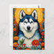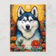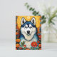 Postal Pintura de flor Husk Siberiano de Arte de Perro