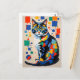 Resumen de pintura geométrica de gato con colores dinámicos y diseño audaz.