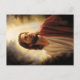 La pintura representa a Jesucristo, figura central en el cristianismo, con el pelo castaño largo y barba. Lleva una túnica blanca y una bata roja sobre su hombro. Sus ojos están mirando hacia arriba, hacia una luz brillante que emana del cielo. En el fondo, un cielo nublado con rayos de luz resplandece, lo que sugiere una presencia divina.