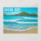 Otra hermosa postal de playa australiana de Blue Sands Studio - ¡mírame sobre pedidos de personalizados! Esta tarjeta contiene una pintura acrílica original de Ingrid Mackey, de Shoal Bay Beach, Nelson Bay, Australia. El diseño de la playa tiene olas que rompen en una orilla de arena y montañas verdes como fondo. El texto de arriba dice 'Shoal Bay, Australia' - edite según sea necesario.Un gran souvenir para recordar tus vacaciones en Shoal Bay. Para más arte en la playa, visita mi tienda Zazzle.com/BlueSandsStudio