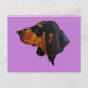 Pintura de aceite de un perro de doberman pinscher ambientada sobre un fondo morado.