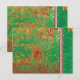 El diseño presenta un diseño bonito e intrincado. Aquí hay una descripción detallada: ・ Figura central: El elemento principal es una forma simétrica alargada que parece un florero decorativo o un motivo. Está decorado con detalles complicados y predominantemente en tonos verdes. ・ Patrones circundantes: Alrededor de la figura central, hay texturas complejas de tipo fractal en verde, naranja y marrón. ・ Borde inferior: La parte inferior de la imagen tiene un borde distinto con un diseño floral blanco sobre un fondo verde, acentuado con elementos rojos y naranjas. Parece un diseño digital o gráfico, posiblemente con fines textiles o decorativos
