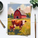 Postal de pintura de vaca para animales de granja de granjas rojas