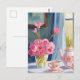 Postal Pintura floral de flores rosadas de té