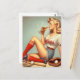 Postal Pintura retro de Chica de béisbol