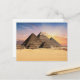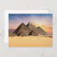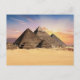 Esta postal muestra una foto de tres pirámides en Egipto.