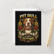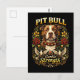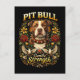 Una audaz ilustración ornamental de un pit bull rodeado de rosas y palomas, que simboliza la lealtad, la compasión y la fuerza mal entendida de la raza.