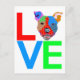 Cara de pitbull colorida y sonriente con letras L, V y E. Diseño digital que crea un patrón de mosaico. Color de fondo personalizar.